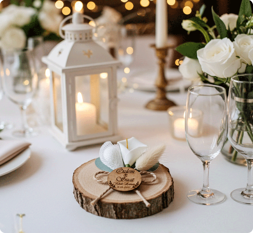 Hayatınızın en özel anlarını sevdiklerinizle paylaşırken, zarif ve şık nikah şekeri hediyelikleri ile davetlilerinize kalıcı bir hatıra bırakabilirsiniz. El işçiliği ve özgün tasarımlarla hazırlanan hediyeliklerimiz, düğün ve nişan organizasyonlarınıza değer katar. Kristal taşlı, ahşap detaylı veya modern minimalist tasarımlı nikah şekerleriyle her konsepte uygun seçenekler sunuyoruz. Hediyeliklerimiz yalnızca estetik değil, aynı zamanda uzun ömürlü ve hatıra değeri yüksek ürünlerdir.