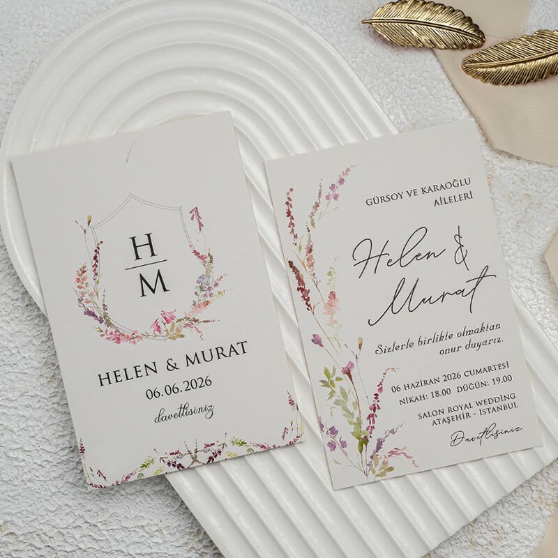 Çiçek desenli davet kartı ve çiçek desenli kapaksız zarfı ile ekonomik çiçekli düğün davetiyesi modelleri içerisinde yerini alır.
