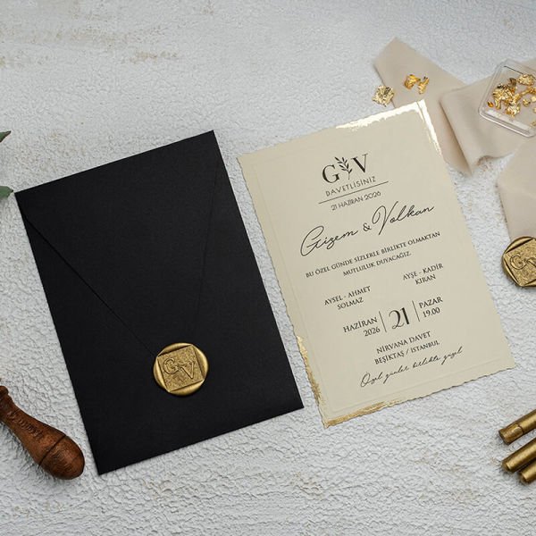 - Mühür detayı, davetiyeye klasik bir zarafet kazandırır.