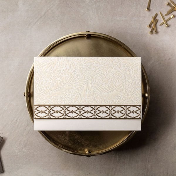 Düğün Davetiyesi İkw-40466 | Kabartma Dokulu Altın Yaldız Desenli Katlamalı Zarflı Modern Davetiye