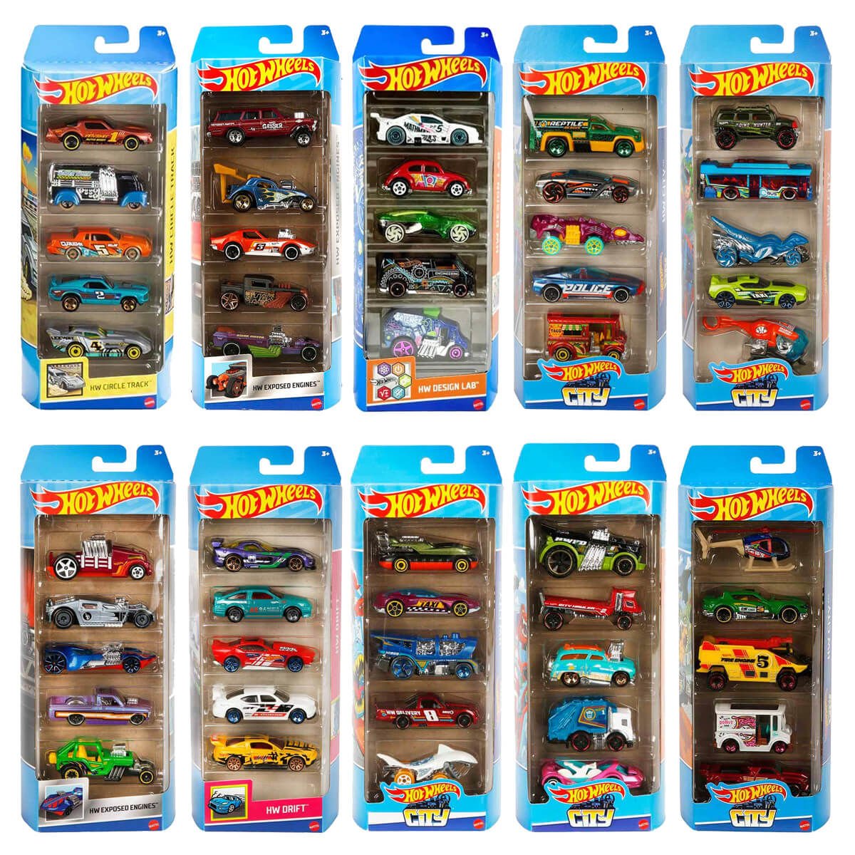 5 farklı Hot Wheels arabasından oluşan özel bir setle koleksiyonunuzu geliştirin ve yarışlarınıza heyecan katın. Bu heyecan verici Hot Wheels yarışlarında daha fazla araba, daha fazla eğlence anlamına geliyor!