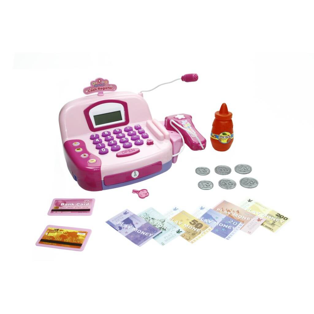 Mikrofonlu Işıklı Ve Sesli Pembe Renk Oyuncak Yazar Kasa VR-66031 - Evcilik Oyun Seti