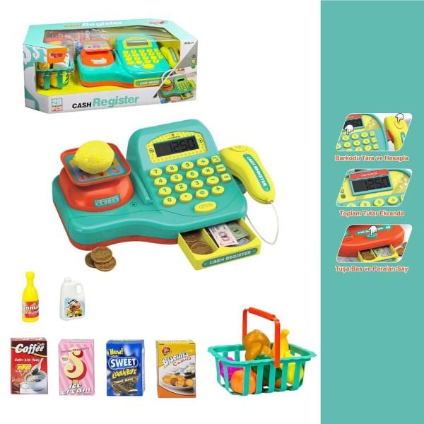 Sesli ve Işıklı Sepetli 29 Parça Tartılı Oyuncak Yazar Kasa Seti LS820A17-8
